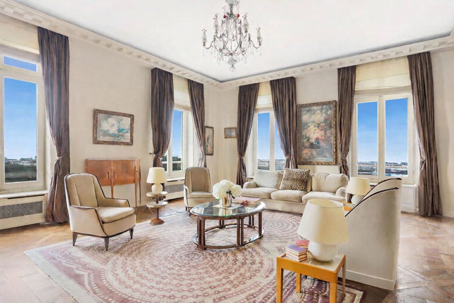 Dès l’entrée, les boiseries anciennes et la hauteur sous plafond révèlent le caractère classique des lieux. L’enfilade composée de deux salons et d’une salle à manger offre plus de 120 m² baignés de lumière, exposés plein sud.