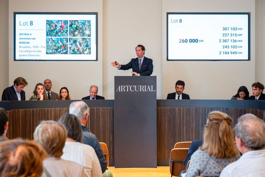 Parmi les temps forts, l’huile sur toile Allégorie de la Poésie d’Élisabeth Louise Vigée-Le Brun a été préemptée à 328 000 € par le Musée Fabre de Montpellier. La suite de quatre huiles sur toiles attribuée à Jeremias van Winghe a trouvé acquéreur à 341 120 €, tandis que Moïse sauvé des eaux d’Andrea Casali s’est envolé à 104 960 €. Roses dans un vase en verre de Jan Frans Van Dael a atteint 137 760 €, et celle de François-Hubert Drouais, La jeune espiègle, a totalisé 150 880 €.