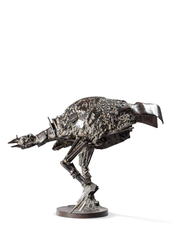 From the 1950s onwards, César developed an entire bestiary in which chickens became recurring subjects. With Rosine, created in 1991, the artist employed the technique of welded bronze combined with metal elements. This sculpture is estimated at €40,000–60,000 (MAD 440,000–660,000).